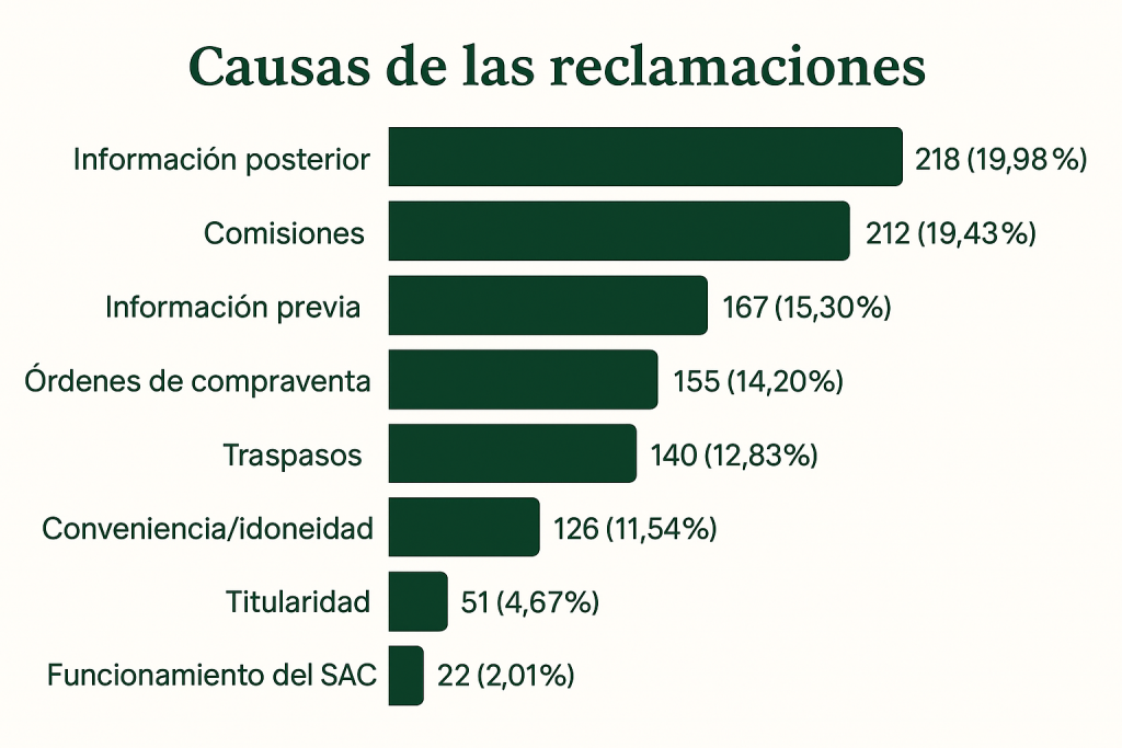 En 461 de los casos, la CNMV consideró que la reclamación no tenían fundamento y por consiguiente no procedió a su tramitación. Atendiendo a las causas de las reclamaciones, a continuación resumimos los datos aportados por el órgano supervisor: